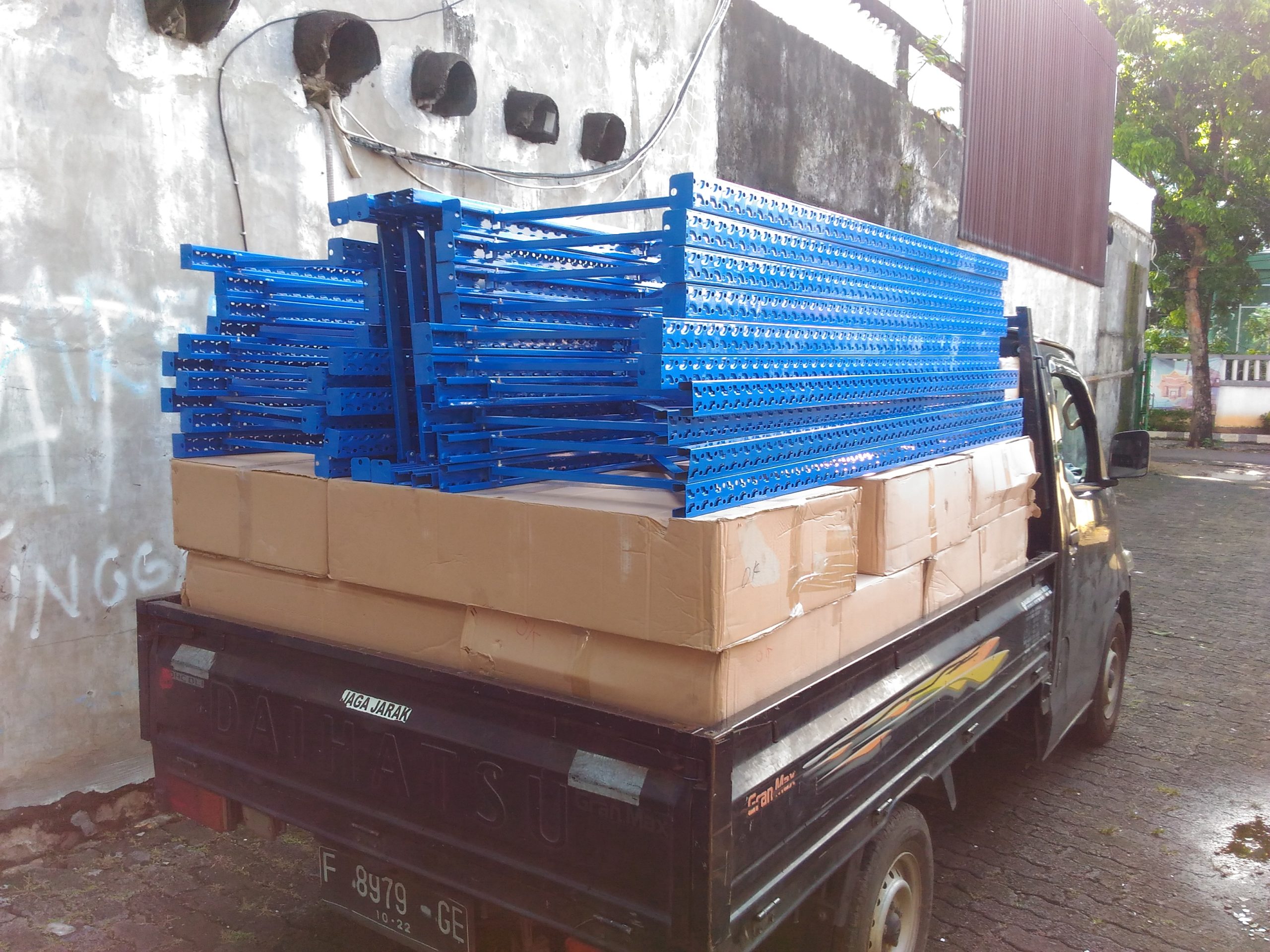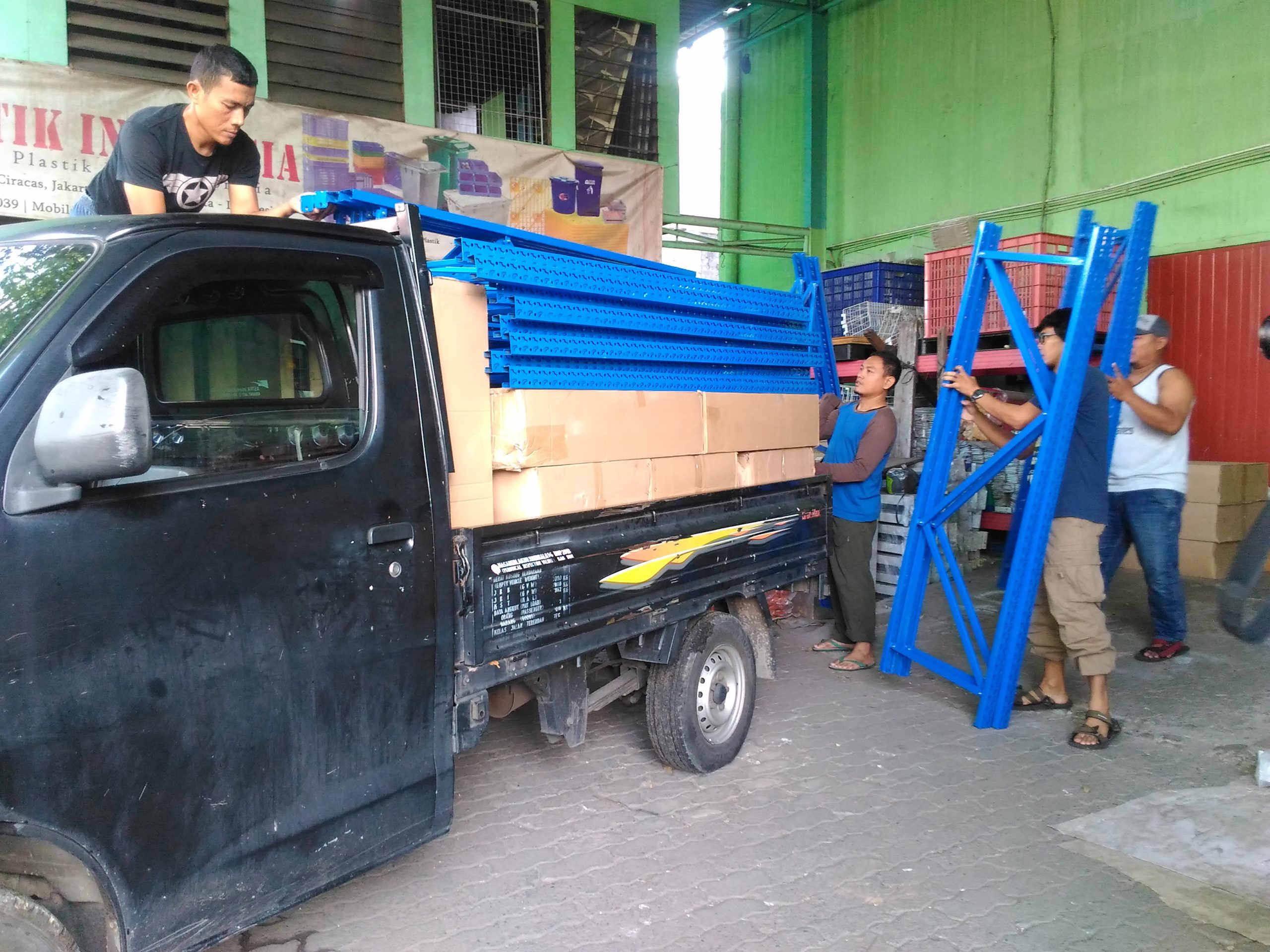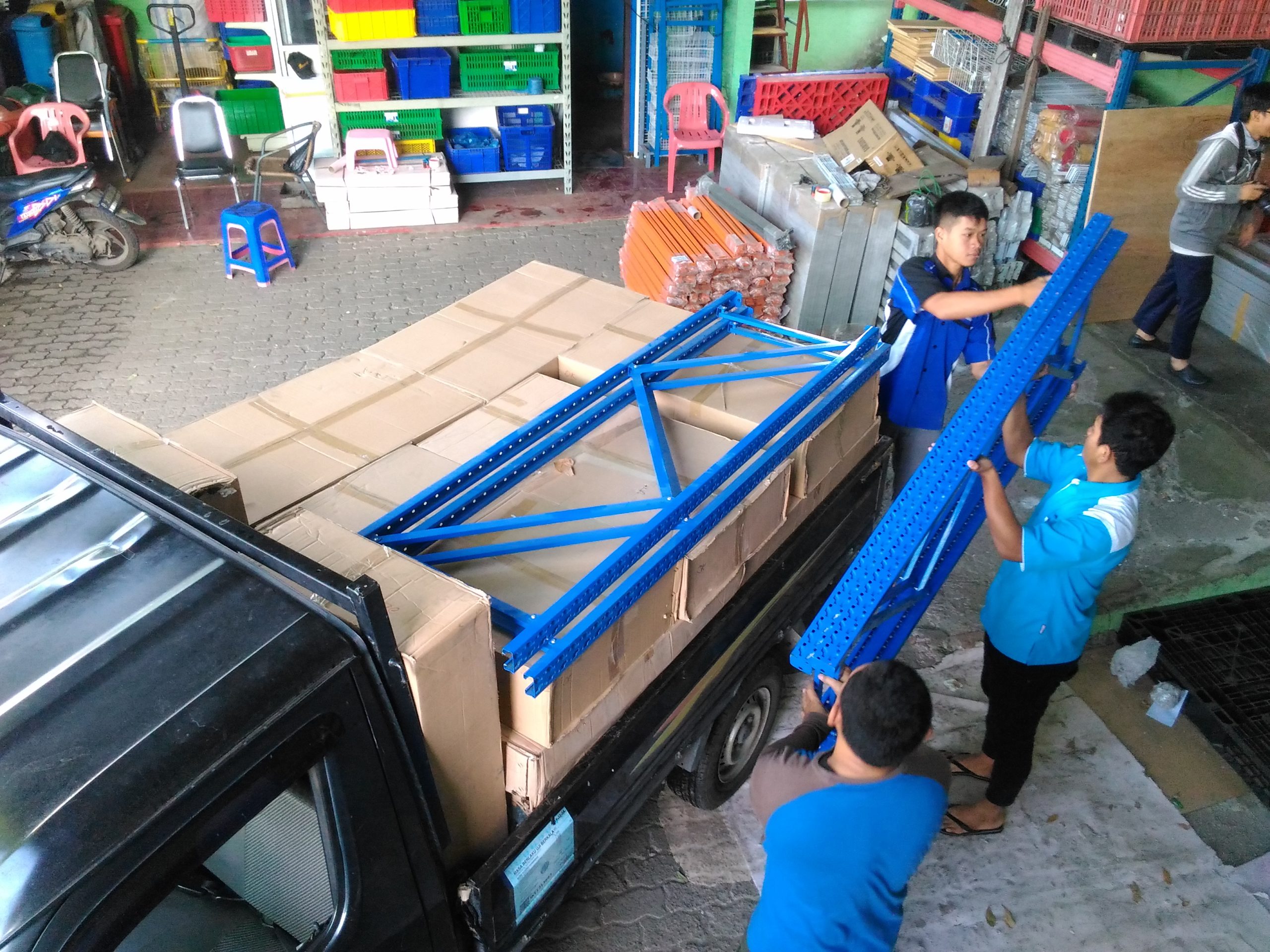 PENGIRIMAN RAK GUDANG LIGHT DUTY RR-36 KANTOR BPJS KESEHATAN BEKASI: Berikut loading 12 Unit Rak Gudang Light Duty RR-36 Starting (200 x 60 x 200 cm, 4 level) untuk pengiriman ke kantor BPJS Kesehatan Cabang Bekasi, dan berikut beberapa dokumentasi yang telah kami siapkan.